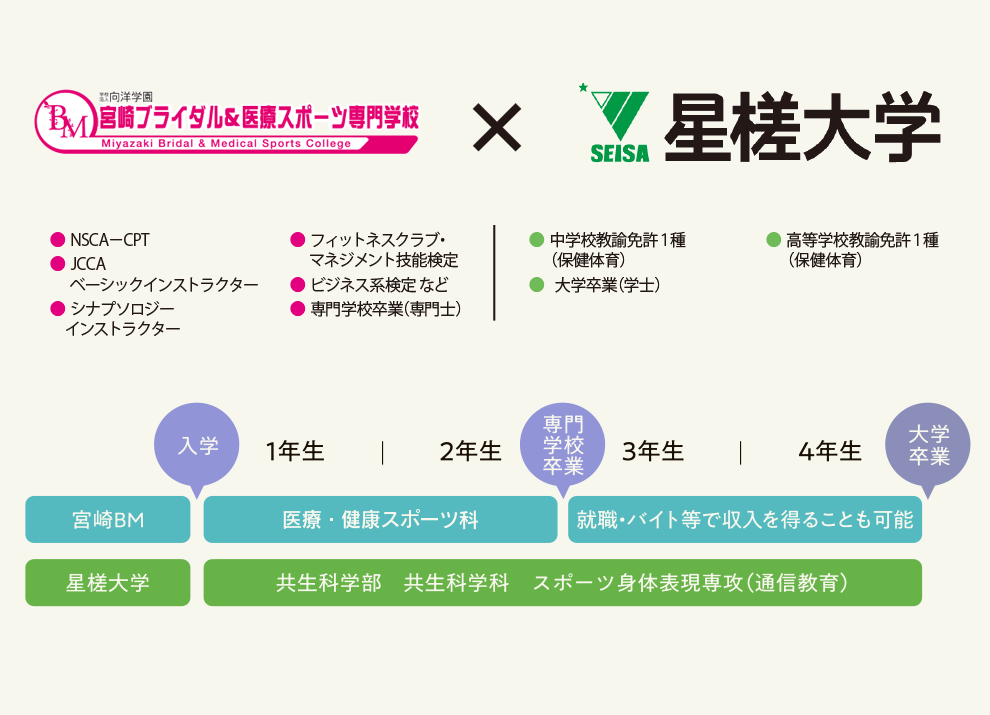 星槎大学とのハイブリット教育システムで大学卒業と体育教員免許(中・高)も取得できる!「スポーツ系資格+ビジネス系資格+中学・高校教員免許=幅広い進路選択を叶える!